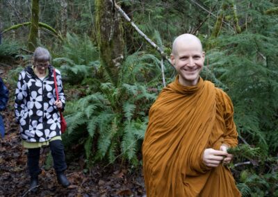 The traditional Pali mantra: “Buddhaṃ saraṇaṃ gacchāmi, Dhammaṃ saraṇaṃ gacchāmi, Saṅghaṃ saraṇaṃ gacchāmi,” meaning, “To the Buddha… Dhamma… Sangha I go for refuge”, is often recited under one’s breath or silently throughout the day and counted on a string of mala beads. Recollecting the Triple Gem—the Buddha, Dhamma, and Sangha—recalling their qualities and deepening our refuge, brings joy to the heart and helps purify the mind.